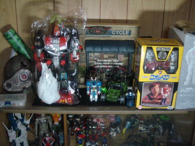 一番左のラピュタのロボット兵頭部はリサイクルショップで見つけました。