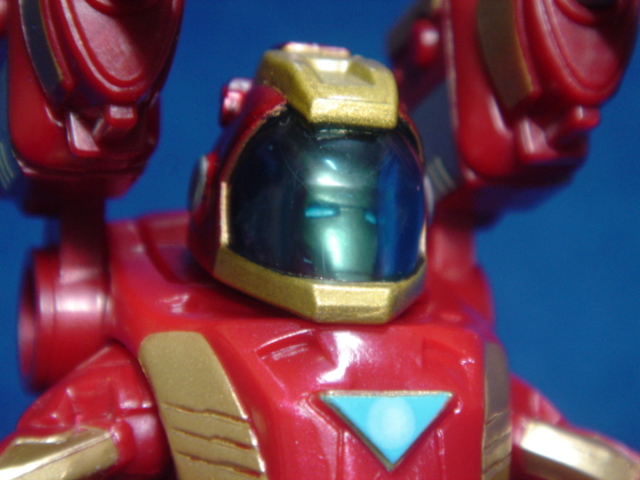 ヘルメットは、両肩の武器と連動して